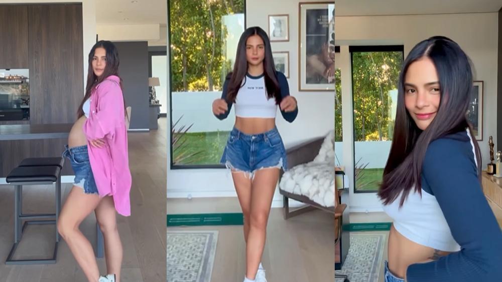 In her Instagram post, she showed off her baby bump during the last week of her pregnancy before flaunting her toned abs two weeks postpartum while doing her makeup.