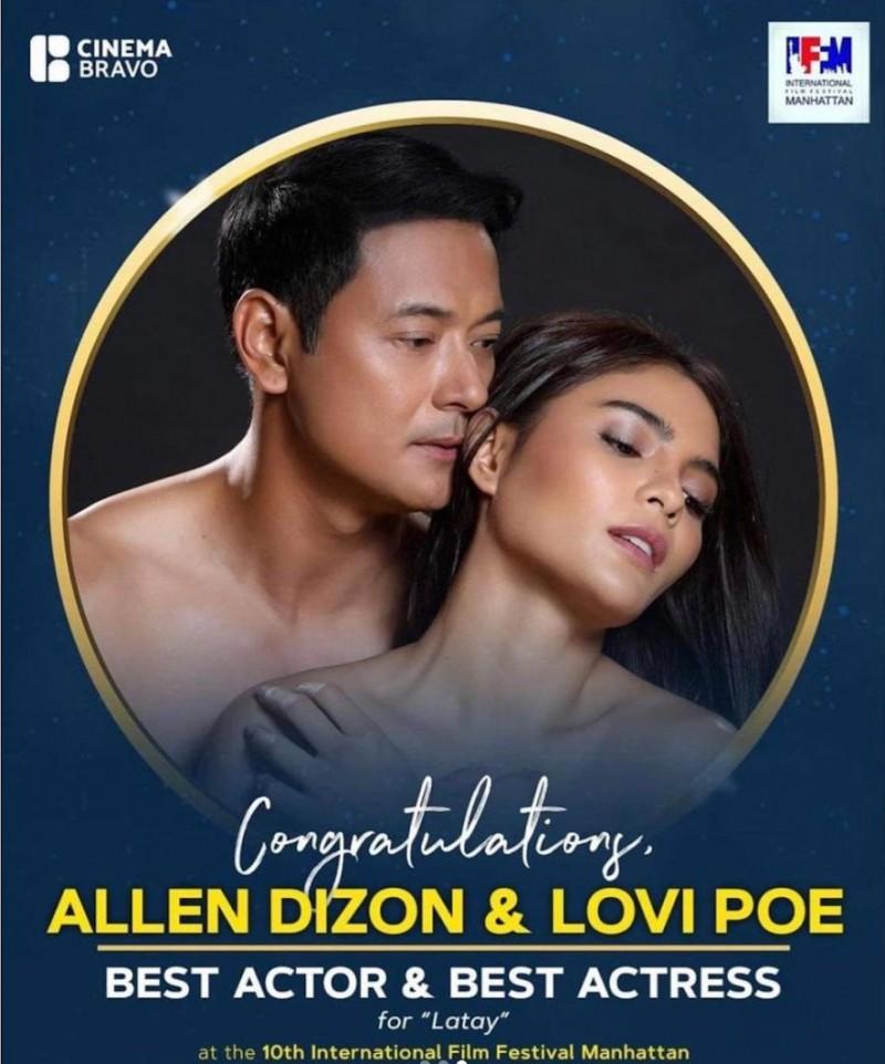 Kapuso star Lovi Poe clinched the Best Actress award for indie film Latay (The Battered Husband) at the 10th International Film Festival Manhattan, the actress announced Thursday, December 3.
