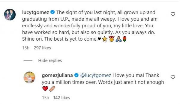 Lucy also wrote a heartwarming letter for Juliana in the comment section of her post and admitted that seeing her graduate was an emotional one.
