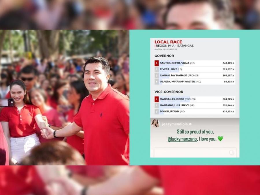 The Star for All Seasons won as Batangas governor, a position she last held from 2007 to 2016. Her son, Ryan Christian Recto, has also been proclaimed as the new representative of the sixth district of Batangas.
