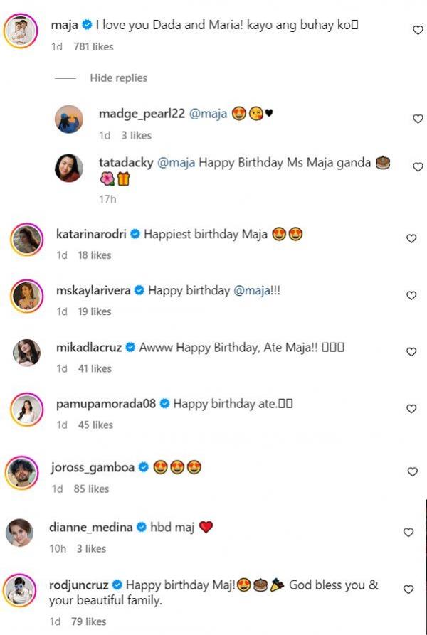 Maja replied to her husband's birthday message saying, “I love you Dada and Maria! Kayo ang buhay ko.”