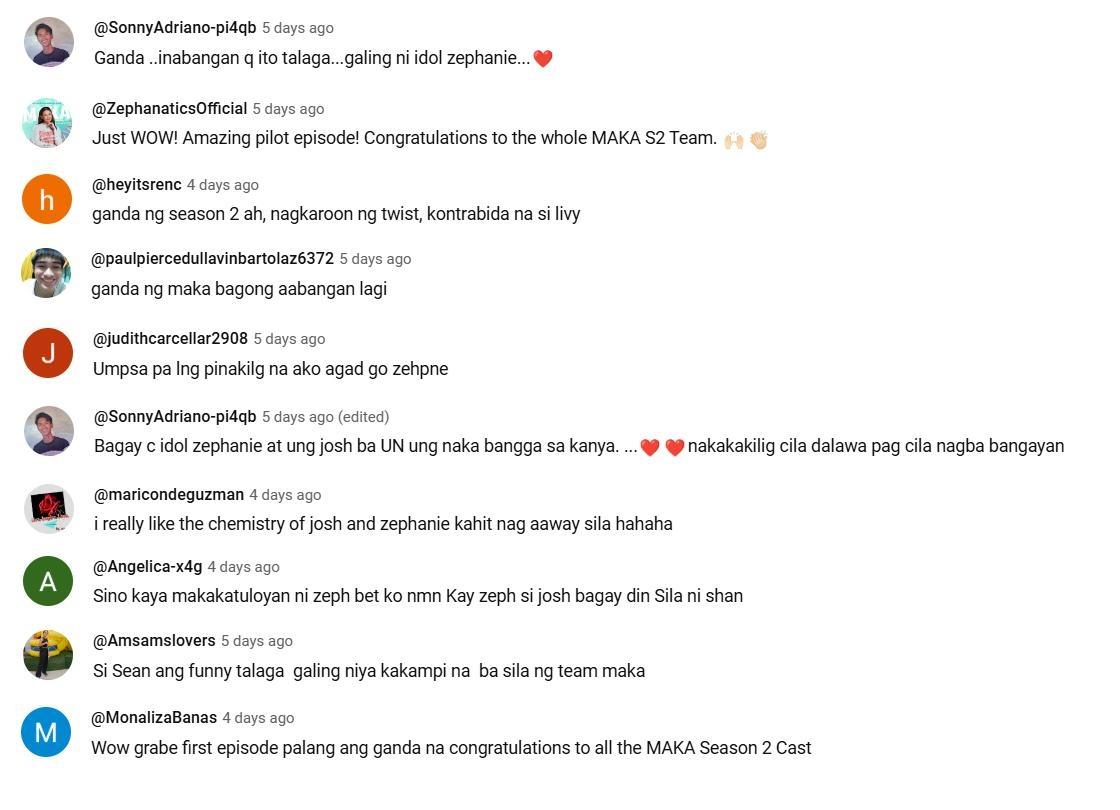 Napuno naman ng papuri ang netizens sa exciting na kuwento ng MAKA season 2 at sa husay ng cast. May mga kinilig din para kina Zephanie at Josh Ford, maging kay Shan Vesagas.