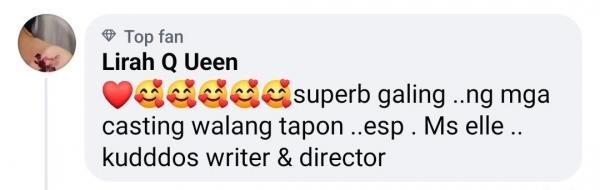 “Superb galing ng mga cast walang tapon especially Ms. Elle [Villanueva]. Kudos writer & director,” dagdag pa ng isang netizen.