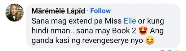 “Sana mag-extend pa Miss Elle or kung hindi nman sana may book 2. Ang ganda kasi ng revenge serye n'yo,” saad ng loyal viewer.