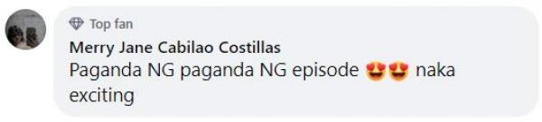 “Paganda nang paganda ang episode. Napaka-exciting,” dagdag pa ng isang Kapuso.