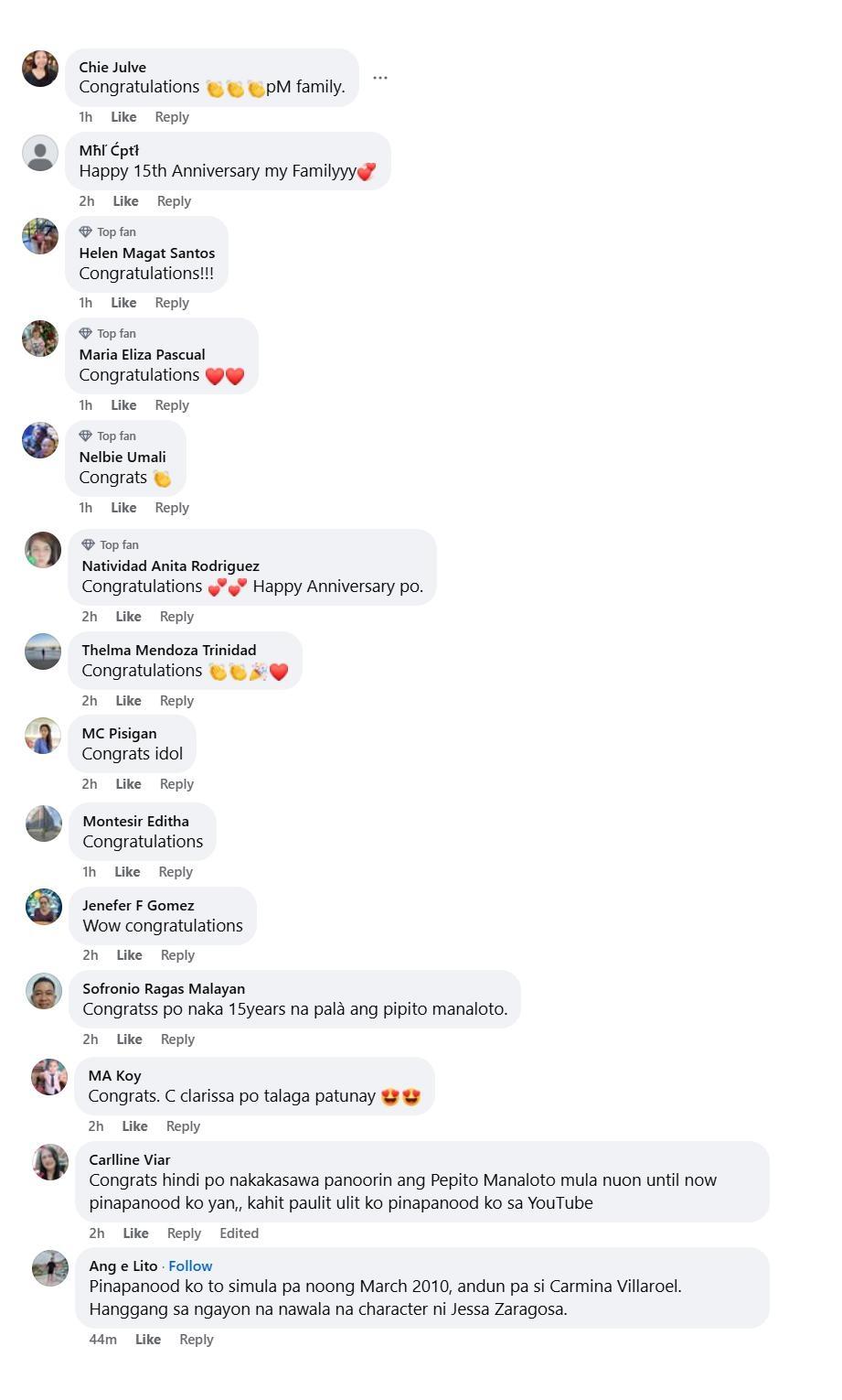 Several fans reacted to Manilyn's nostalgic post and some even shared that they have been watching Pepito Manaloto since it first aired in 2010.