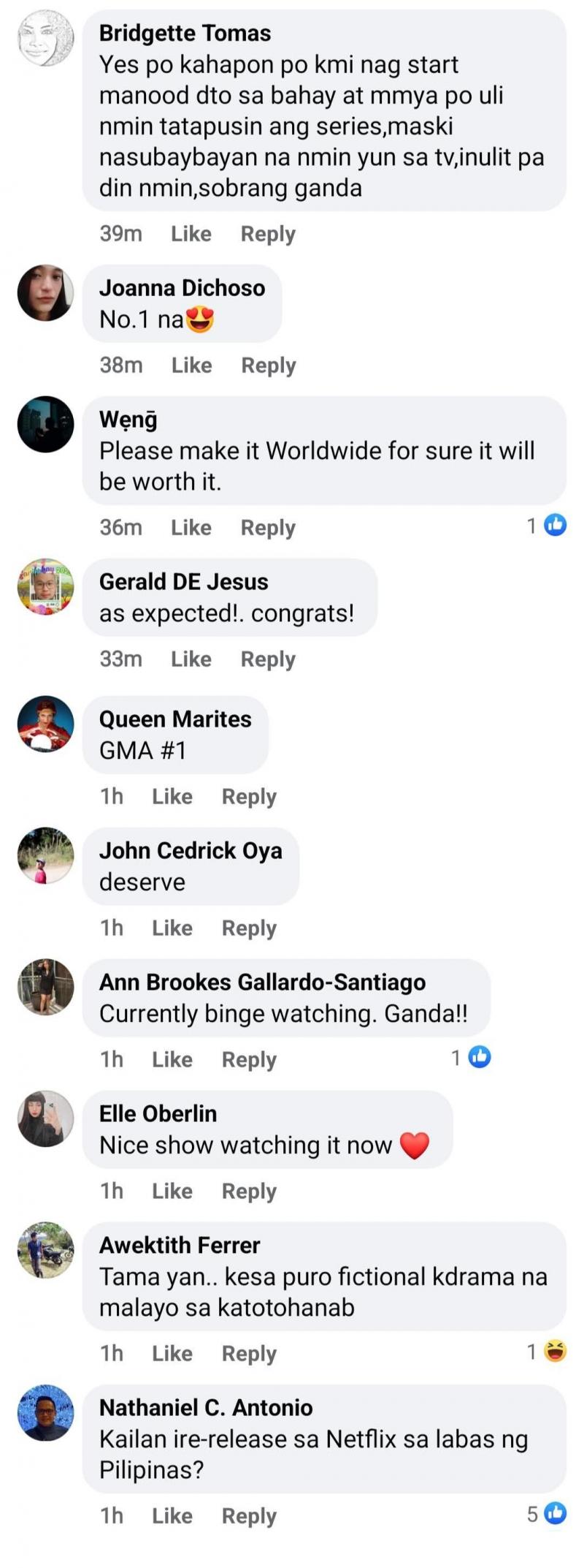 "Currently binge watching. Ganda!!" komento ni Ann Brookes Gallardo-Santiago.