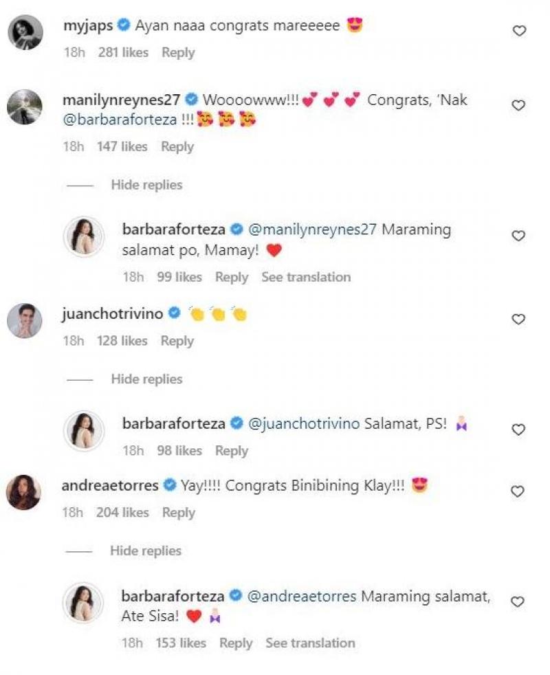Bukod sa fans at family ni Barbie na natutuwa sa latest achievement niya, proud din ang mga co-stars niya sa show.