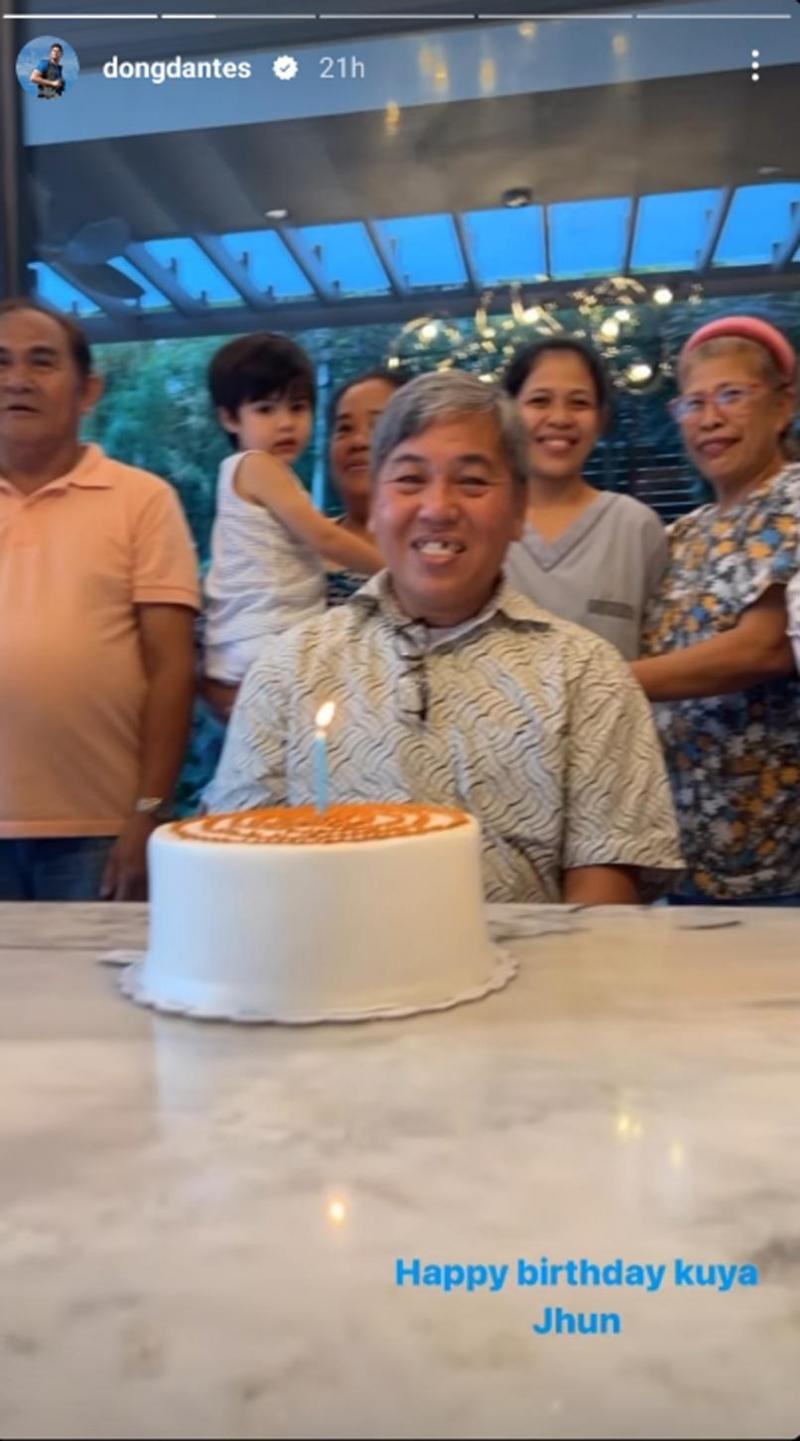 Sa Instagram Story ng aktor kamakailan, makikitang pinaghanda nila ng cake ang birthday celebrant na si Kuya Jhun.