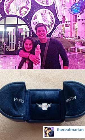 Marian posted a photo of the ring in her Instagram account, @therealmarian, with the caption, "Hanggang ngayon e nasa alapaap pa rin ako, lalo sa na sinabi mong ako ang sagot sa yong mga dasal at gusto mong ipag sigawan sa mundo kung gaano mo ako kamahal... haaay mahal ko... Mahal na mahal din kita!"