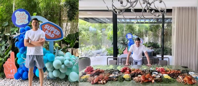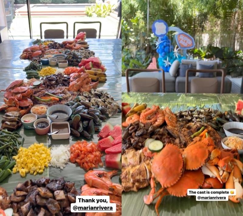 Marian shared photos of Dingdong in front of the “super dad” balloon arrangement and the boodle fight-style spread they prepared for him.