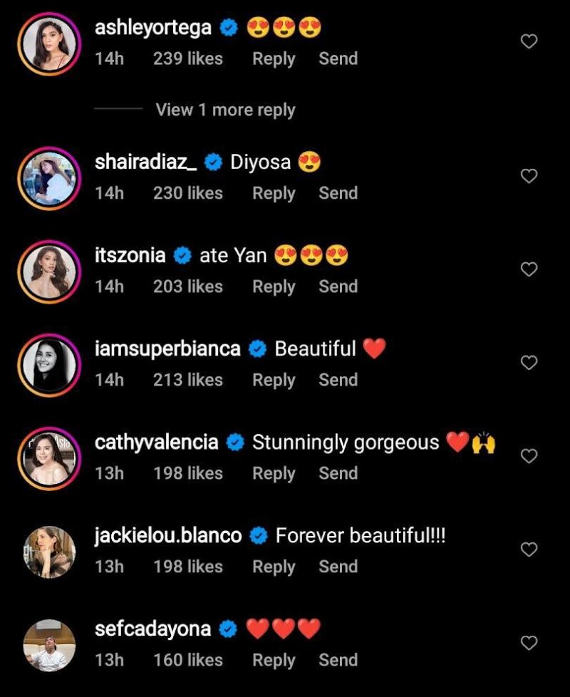 Many showbiz personalities such as Ashley Ortega, Shaira Diaz, Zonia Mejia, Sef Cadayona, Jackie Lou Blanco, and Bianca Gonzalez-Intal couldn't help but admire Marian's beauty in the comments section.