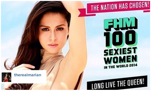 Marian, took to Instagram to extend her gratitude to all the fans who voted for her in FHM’s sexiest poll.