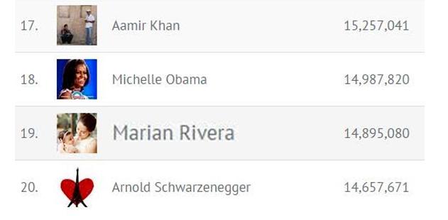 Marian is the sole Filipino in the top 20 list which includes popular names such as Nicki Minaj, Kim Kardashian, Ellen DeGeneres, Hugh Jackman, among others.