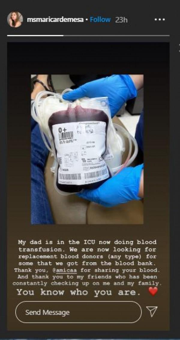 Maricar De Mesa is asking help for blood donation for his father who is currently at the hospital.
