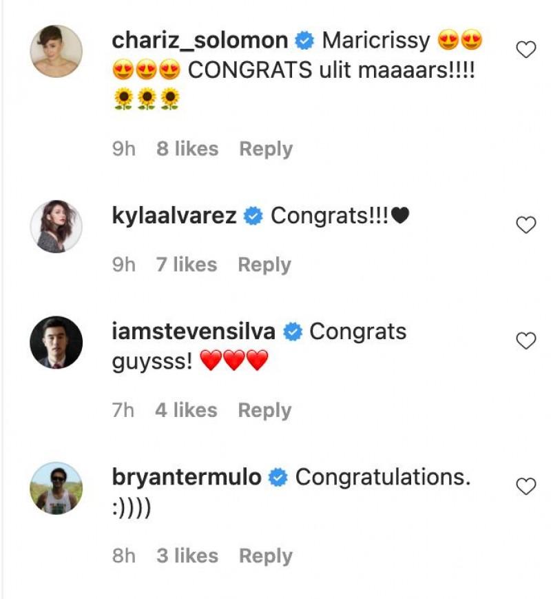 Chariz Solomon penned, “Maricrissy, congrats ulit maaaars!!!!”