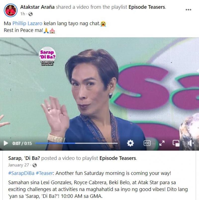 Ibinahagi rin ng komedyanteng si Atak ang teaser ng guesting nila ni Phillip sa Sarap 'Di Ba? kung saan nakasama nila sina Lexi Gonzales, Royce Cabrera, Beki Belo.