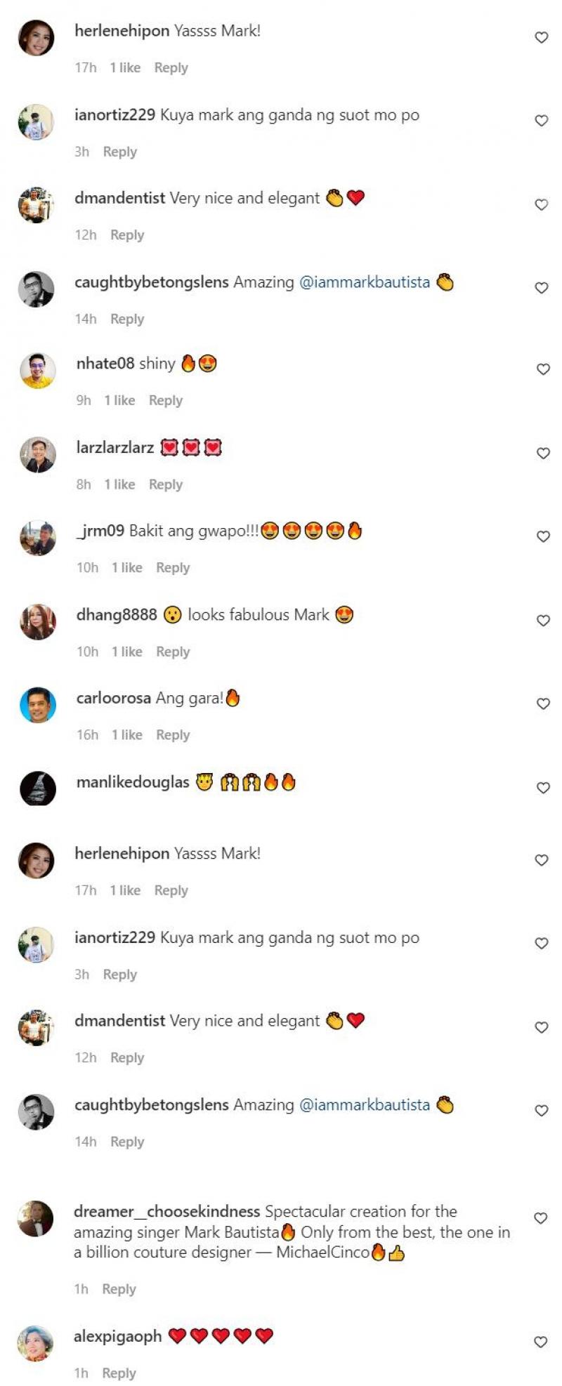 Mark was wearing a fully embroidered robe and fully sequined suit and pants from the world-renowned Dubai-based Filipino designer, Michael Cinco.