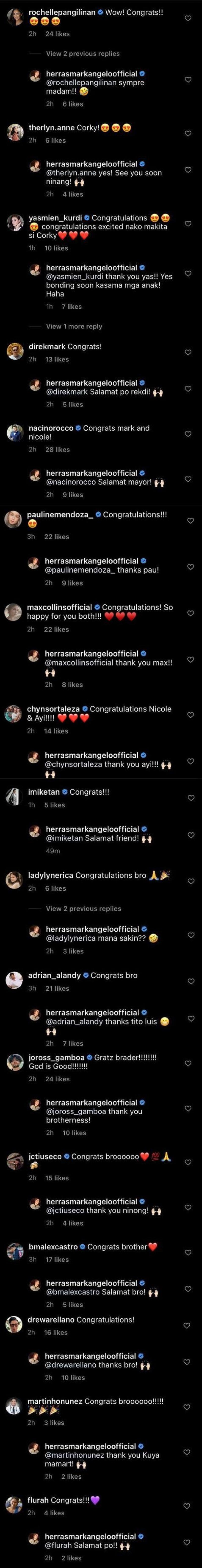 Celebrity friends congratulated the couple and well wishes through Mark's comments.