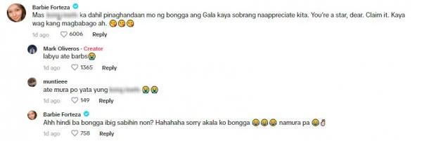 Maraming netizens ang natuwa rin sa pagkomento ni Barbie sa mismong TikTok video ni Mark. Sinabi niya rito na mas naging engrande ang GMA Gala dahil sa content creator. Komento niya rin, "You're a star, dear. Claim it. Kaya wag kang magbabago ah."