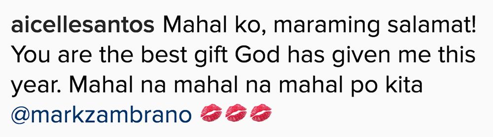 “Mahal ko, maraming salamat! You are the best gift God has given me this year. Mahal na mahal na mahal po kita @markzambrano”