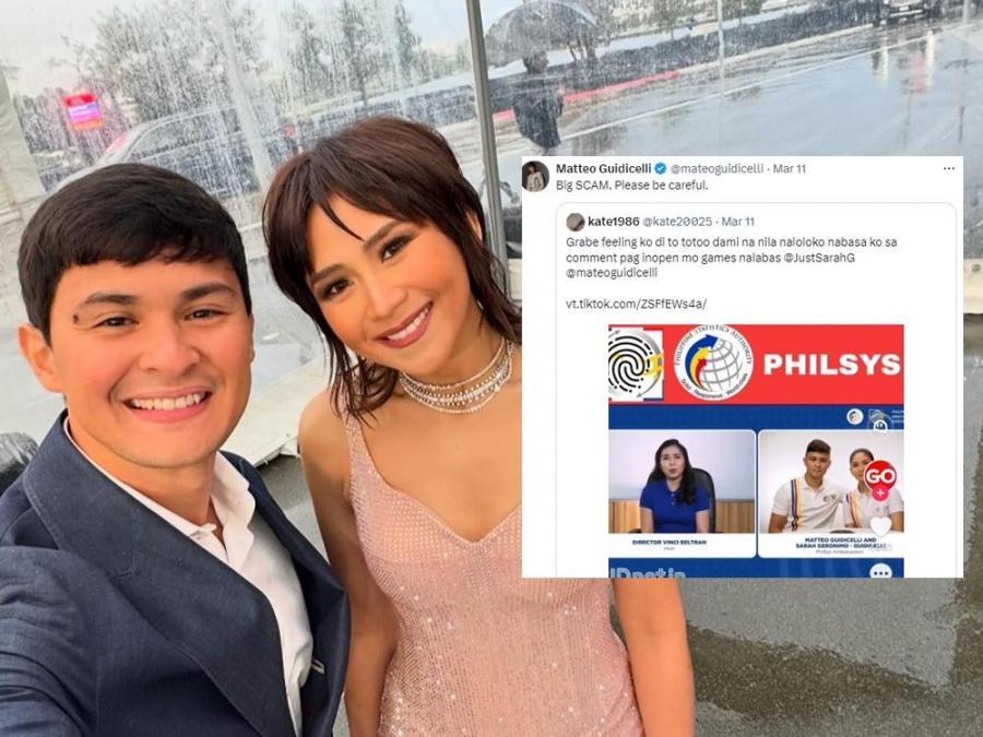 Matteo Guidicelli immediately informed the public about an online scam using his and Sarah Geronimo's names, promising individuals cash assistance to people with national ID.