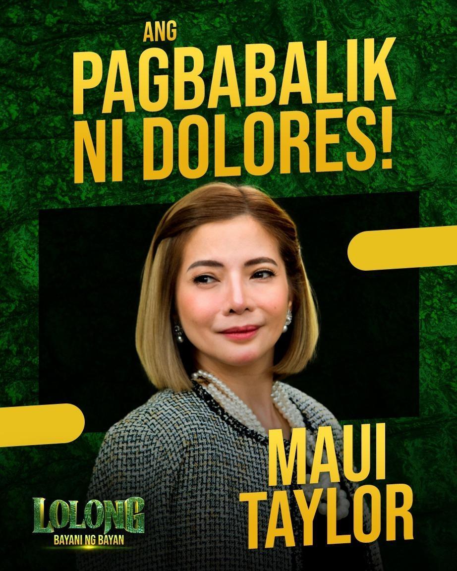 Gumaganap siya dito bilang Dolores, dating kapitana sa barangay nina Lolong (Ruru Madrid).