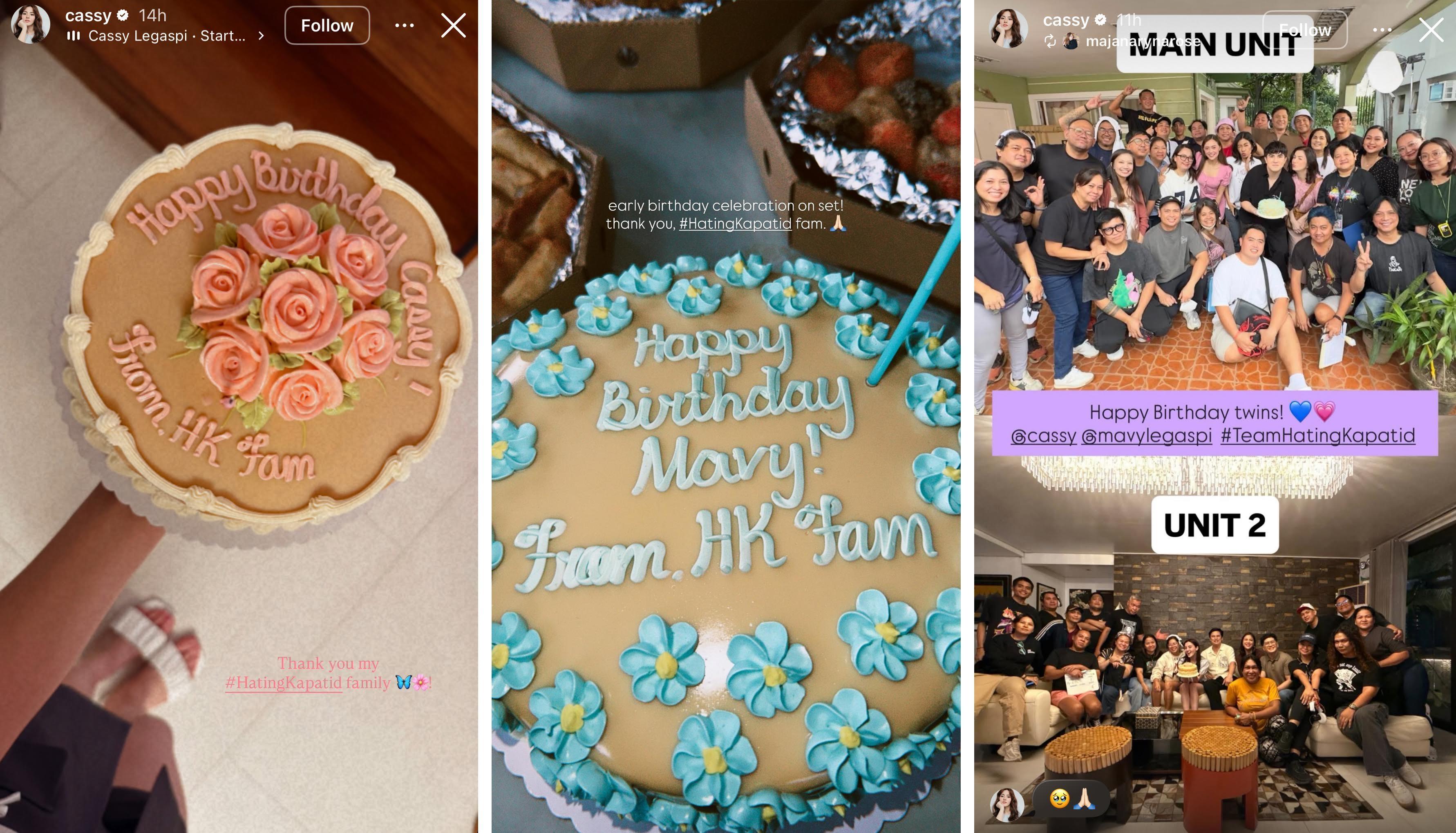 As seen on their Instagram accounts, Mavy and Cassy both received their birthday cakes on set and had a wonderful celebration with their Hating Kapatid co-stars and production team.