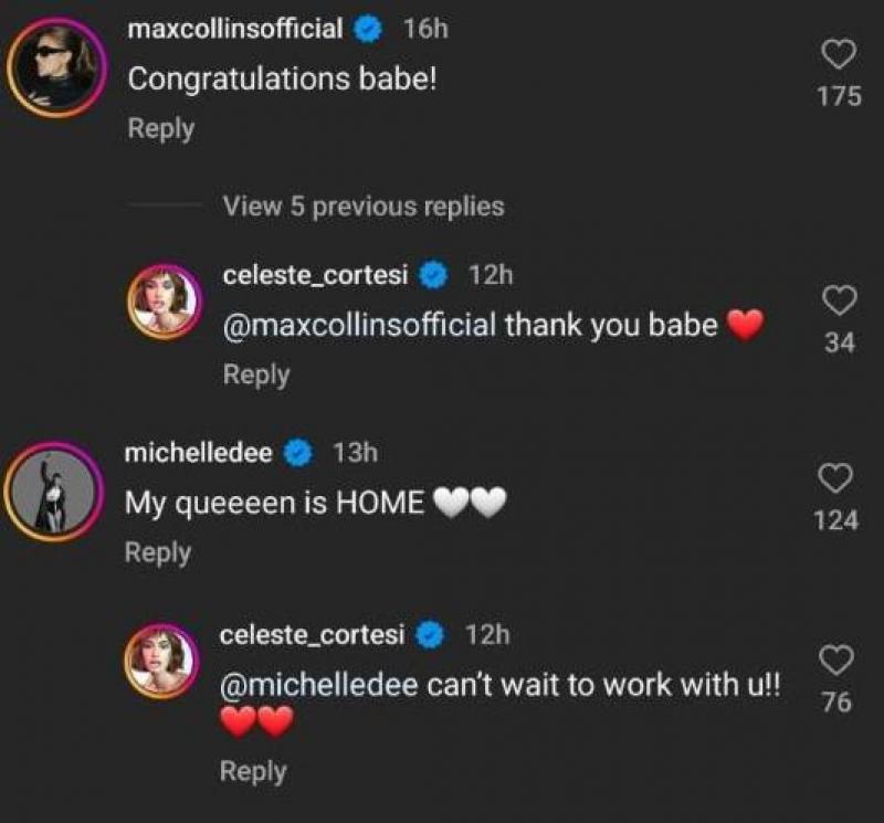 Fellow Sparkle artists Max Collins and current Miss Universe Philippines titleholder Michelle Dee were among those who congratulated Celeste.