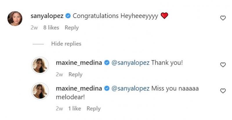 Sa comments section, marami ang nagpaabot ng pagbati kay Maxine para sa kanyang bagong proyekto, kabilang na ang First Yaya and First Lady lead star at co-star niyang si Sanya Lopez.