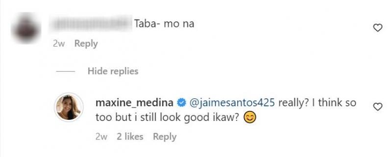 Hindi nagpatinag si Maxine sa komento tungkol sa kanyang pisikal na hitsura at sinabing "really? I think so too but I still look good, ikaw?" kalakip ang isang smiley.