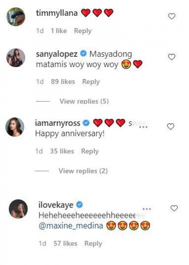 Some of her First Yaya co-stars including Sanya Lopez and Kakai Bautista reacted to her kilig post on Instagram.