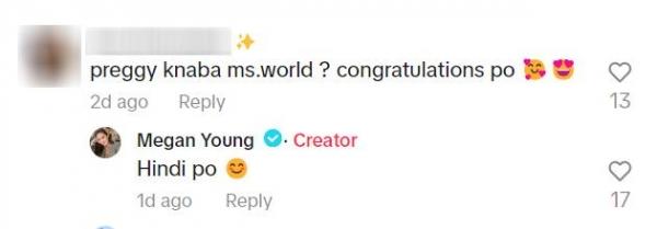Ginawa ni Megan ang paglilinaw sa TikTok page niya nang may mag-congratulate sa beauty queen.