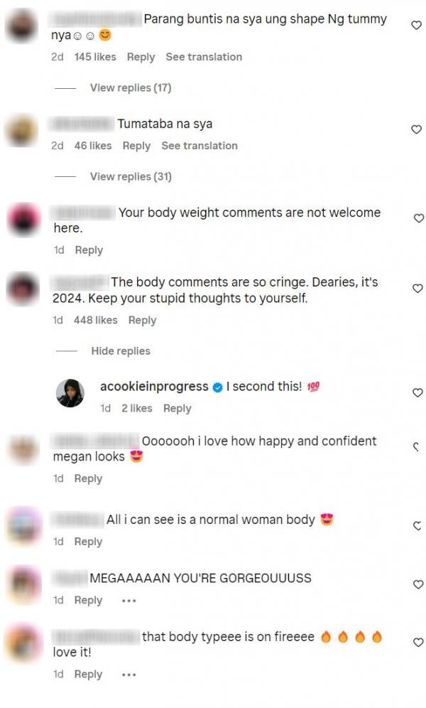 Samantala, maraming netizens at fans sa Instagram naman ang ipinagtanggol si Megan sa posts tungkol sa kanyang timbang.