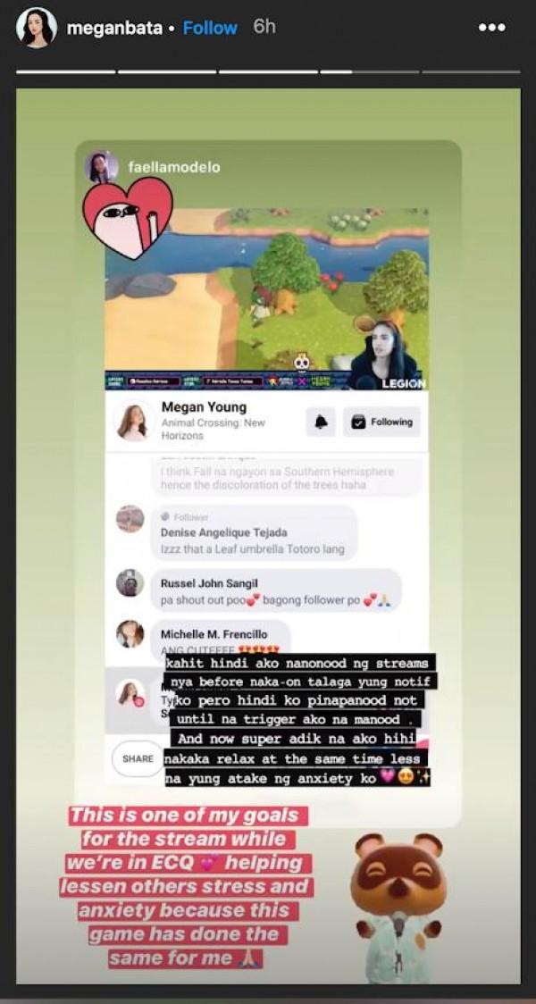 Grateful by the sweet gesture, Megan reposted it and said, “This is one of my goals for the stream while we're in ECQ (enhanced community quarantine). Helping lessen others stress and anxiety because this game has done the same for me.”