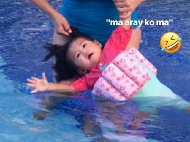 The former ‘Bubble Gang’ star uploaded on Instagram her meme-worthy photo with her first-born, who seems to be struggling in the water.