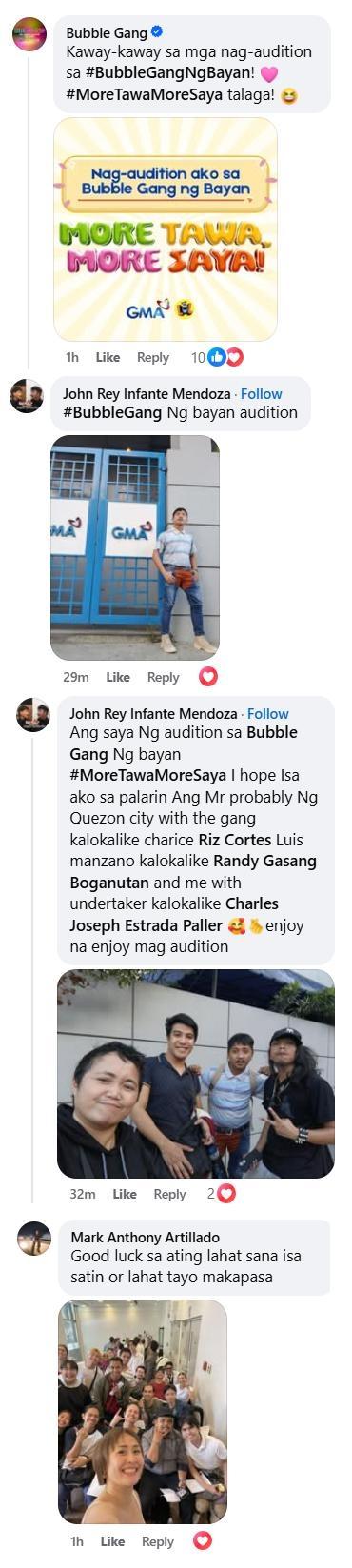 Post ni John Rey Infante Mendoza, “Ang saya Ng audition sa Bubble Gang Ng bayan #MoreTawaMoreSaya I hope Isa ako sa palarin Ang Mr probably Ng Quezon city with the gang kalokalike charice Riz Cortes Luis manzano kalokalike Randy Gasang Boganutan and me with undertaker kalokalike Charles Joseph Estrada Paller 🥰🫰enjoy na enjoy mag audition”