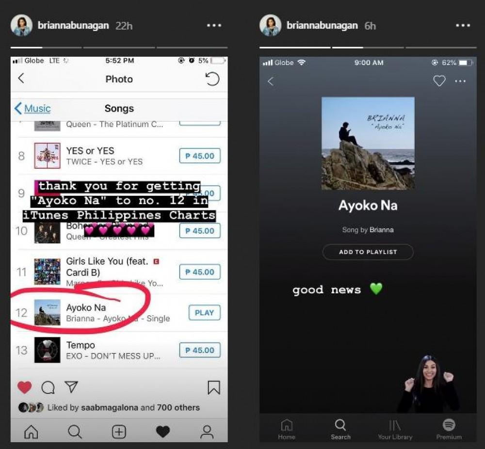 Certified LSS ang single ni Brianna Bunagan na 'Ayoko Na' na available na sa music-streaming site na Spotify at iTunes.