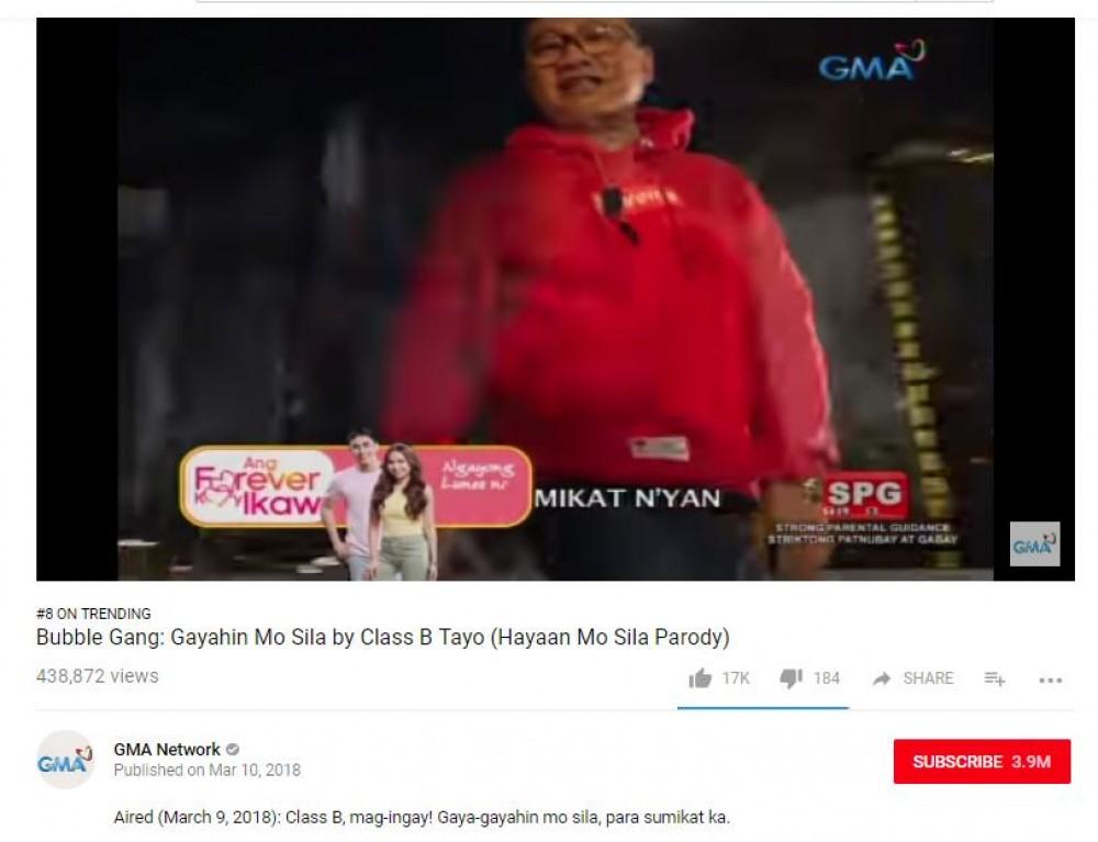 Since it was uploaded last March 10, the parody song made it on the number eight spot of YouTube's trending list and has garnered close to 500,000 views and counting.