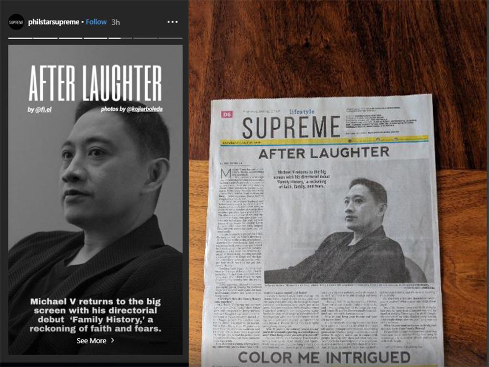 Award-winning comedian Michael V. is the featured artist on the cover of The Philippine Star lifestyle section Supreme.