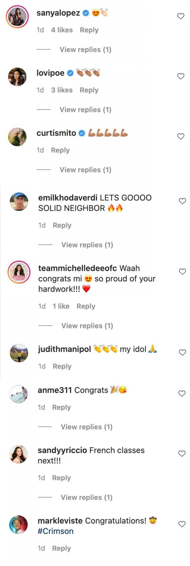 Her post has earned her much praise from fans and co-workers, including Sanya Lopez and Lovi Poe, who sent their congratulatory messages for the beauty queen.