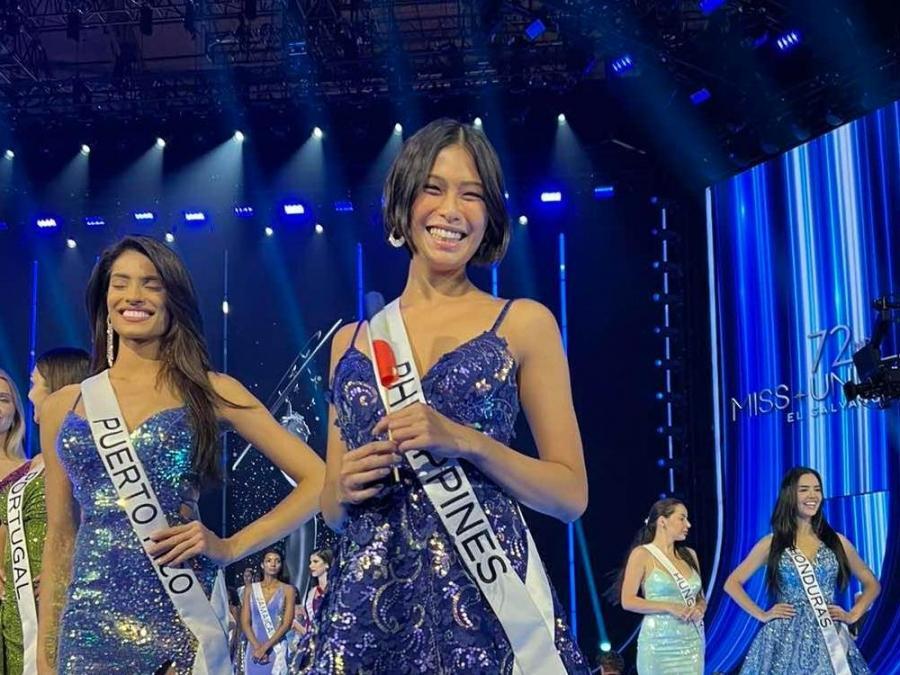Philippine bet Michelle Dee was announced as one of the Top 20 candidates in the Miss Universe 2023 pageant. During the coronation night in El Salvador, Michelle's name was called before a screaming crowd.
