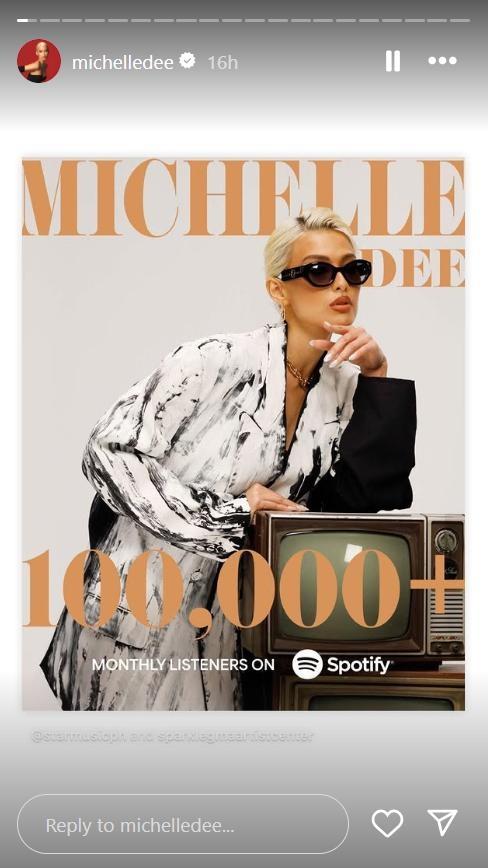 Aside from her new car, Michelle is celebrating a milestone in the streaming music platform Spotify, after getting over 100,000 monthly listeners. She recently released her debut single titled “Reyna”.