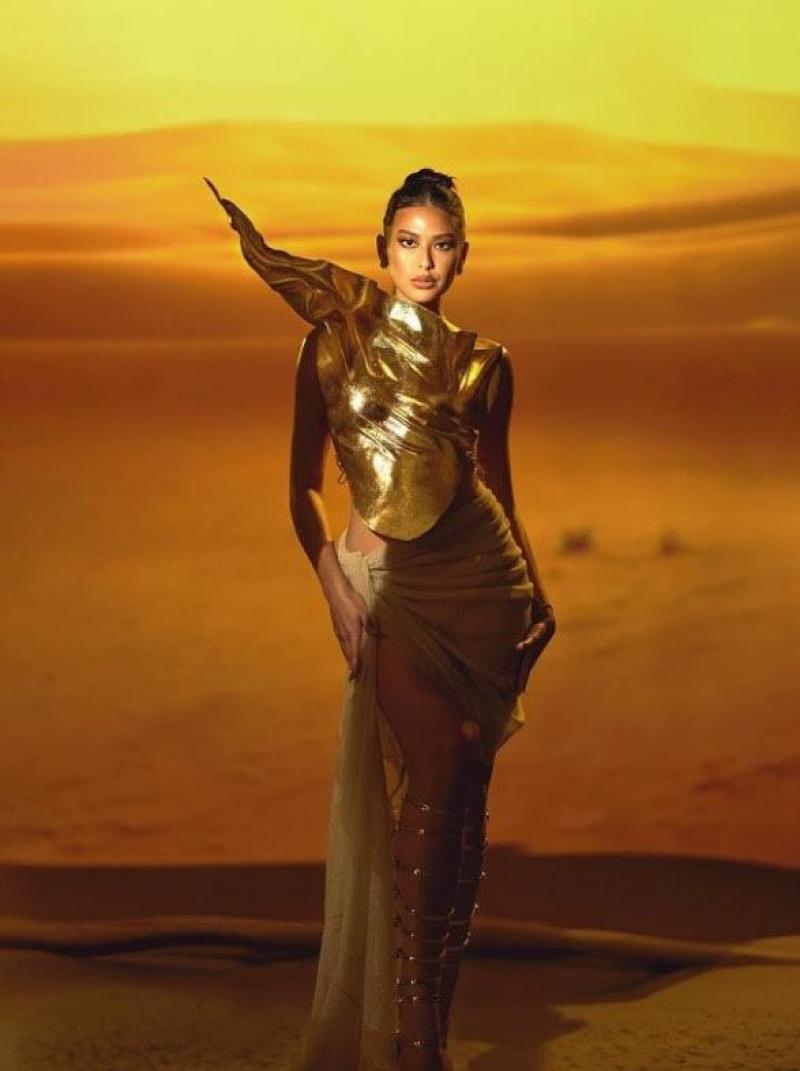 Miss Universe Philippines 2023 Michelle Dee looks like a goddess wearing a golden armor when she attended the glitzy Mega Ball 2023 on Independence Day (June 12).