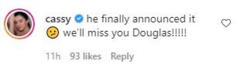 Sabi ni Cassy, "He finally announced it 😕 we'll miss you Douglas!!!!!"