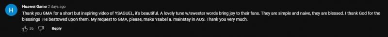 Many viewers, like YouTube user Ramjie Bernson, also noticed YsaGuel being a natural on camera despite not being a love team.