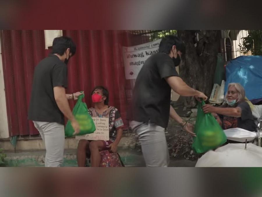Kabilang sa mga inabutan ni Miguel ng grocery pack ang vendor ng buko juice, parking, attendant, security guard, at lalaking nakatira sa kariton.