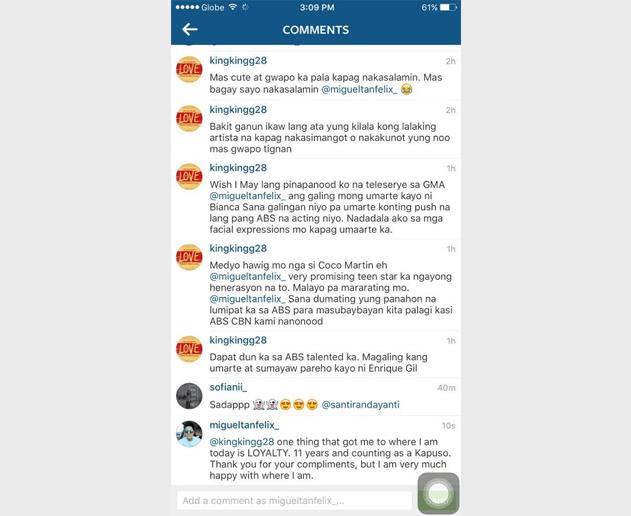 The teen star rarely replies in comment threads, but he took his time to proudly say, “One thing that got me to where I am today is LOYALTY. 11 years and counting as a Kapuso.”