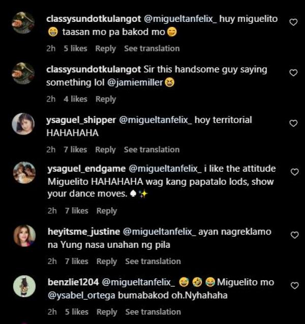 Miguel's comment drew hilarious reactions among his and Ysabel's shippers.