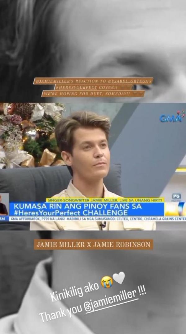 Meanwhile, Ysabel felt 'kilig' over Jamie's flattering remark about her rendition of "Here's Your Perfect."